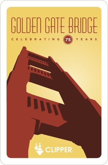 August 1, 2012: A collectible, limited edition Clipper® Card was developed in partnership with the Metropolitan Transportation Commission and released for public purchase as a tribute to the Golden Gate Bridge 75th Anniversary on May 27, 2012. The unique card cost $7, plus the amount of transit value loaded to the card.