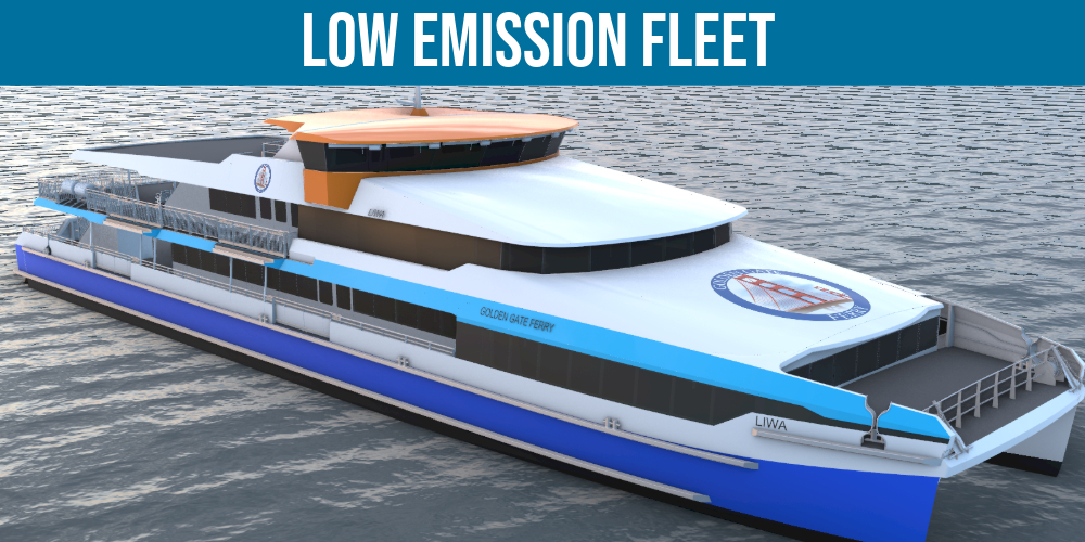Golden Gate Ferry is currently designing a new low-emission ferry, the MV Liwa, that will be the model for a complete fleet replacement by 2033. The MV Liwa is a 500-passenger high-speed catamaran expected to be in service in 2027 and represents a significant leap in efficiency and emission reduction compared to the existing fleet. The MV Liwa will bring an 80% reduction in emissions and require 30% less power due to an improved hull design while providing the same high-speed service our customers expect. The MV Liwa is the first ferry of our future fleet, which will consist of 7 or 8 identical vessels providing a standardized experience across Golden Gate Ferry.