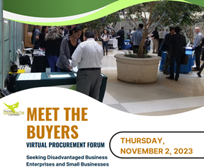 The Business Outreach Committee is seeking Disadvantaged Business Enterprises (DBEs) and Small Business Enterprises (SBEs) to participate in a Virtual Meet the Buyers Procurement Forum. This event is an opportunity for DBEs/SBEs to meet procurement staff from various transit and transportation agencies, introduce your firm's products and services, share your capabilities statement, and discover upcoming contracting opportunities with BOC member agencies.