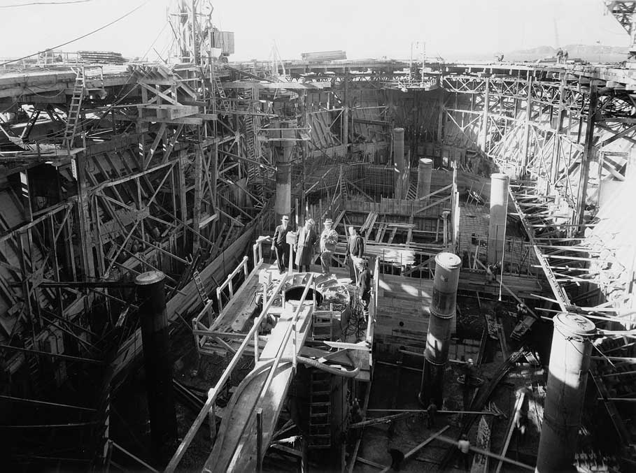 Once the concrete work was done, the erection of the steel for the south tower began in January 1935 and was completed in just six months.