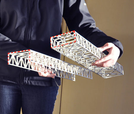 This model shows the Bridge deck today. The difference from the original design, shown above, is the addition of bottom bracing. The cross section is a closed shape.