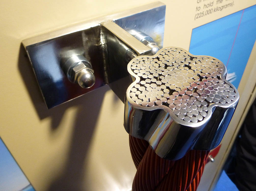 A cross-section of one of the original vertical suspender ropes. |