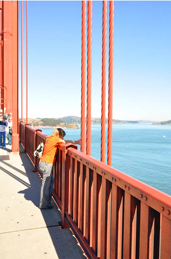 The steel suspender ropes are the 500 vertical lines you can see and touch across the length of the Golden Gate Bridge.