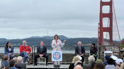Elected officials, community leaders, advocates, and public agencies came together this morning to commemorate the completion of the construction of the suicide deterrent system on the Golden Gate Bridge, also known as the net. The event recognized the years of advocacy and bold leadership that led to the completion of this life saving project.