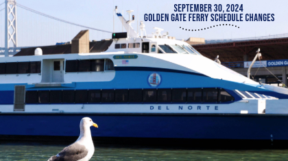 Beginning Monday, September 30, 2024, Golden Gate Ferry will implement schedule adjustments to better align with ridership demands. Scroll down for an overview of the new schedules, click here to view new schedules, or click here to download and print. On the timetables below, yellow highlights indicate a timepoint change for an existing trip. Please check schedules carefully.