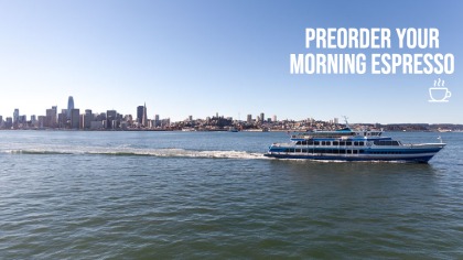 Preorder your morning espresso drink before you arrive at our Larkspur Ferry Terminal and your coffee will be waiting for you as you board your boat. Our new coffee cart at the Larkspur terminal offers a variety of delicious espresso drinks and a small variety of snacks to grab and go before you board.
